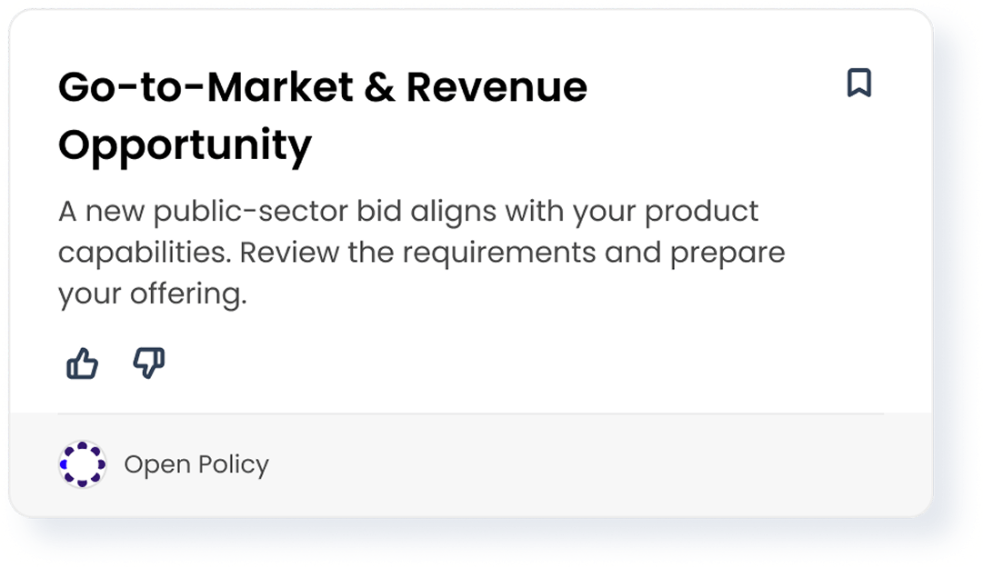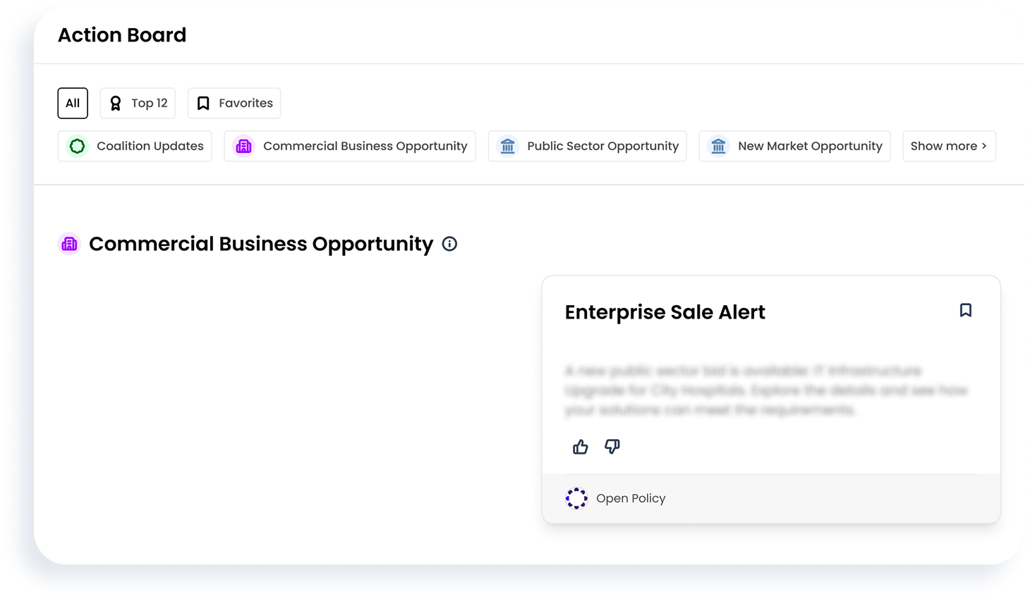 Your policy-driven strategic radar Identify how policy developments create real business opportunities or operational risks for your organization, and move first.
