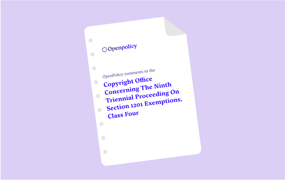 OpenPolicy comments to the Copyright Office concerning the Ninth Triennial Proceeding on section 1201 exemptions, Class Four
